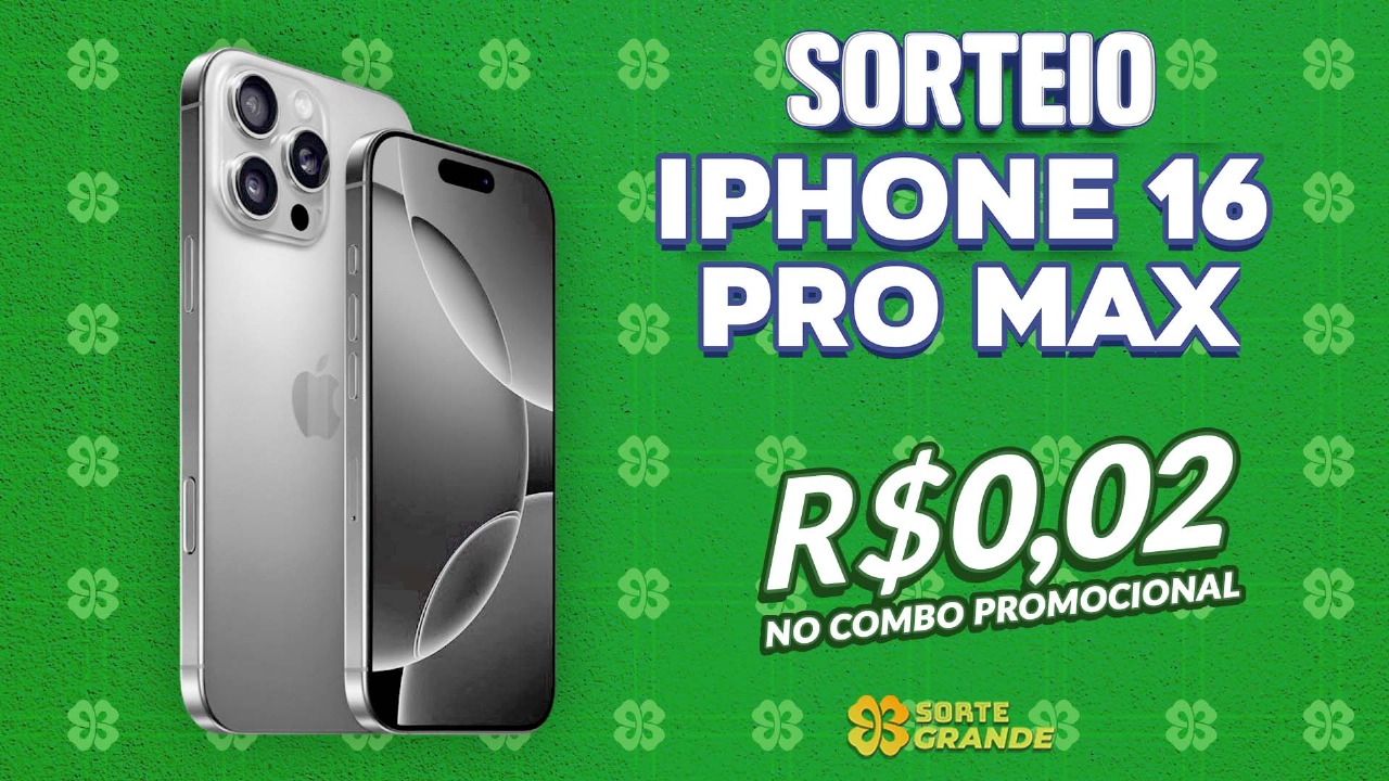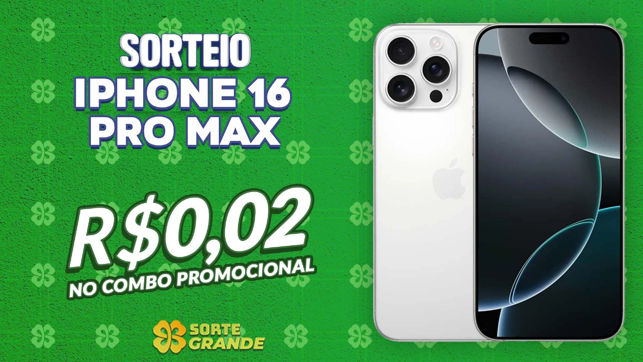 1) Prêmio principal: 1 Iphone 16 PRO MAX 256Gb. Frete incluso pra todo o Brasil;